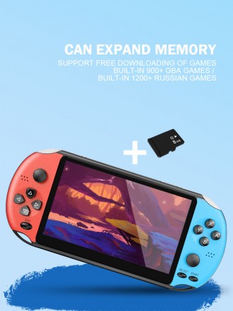 Игровая консоль X12  - это современное портативное устройство на котором можно играть в различные игры или просматривать видео файлы, читать книги, слушать музыку. Она обладает большим семи дюймовым экраном высокой четкости, с функцией защита глаз и двумя встроенными динамиками, на тыльной стороне корпуса. В консоли более 1000 игр. Ее можно подключить к телевизору или компьютеру и использовать большие экраны для игр. Игровая консоль X12  работает от встроенного аккумулятора повышенной емкости, выполнена из качественных материалов, имеет улучшенный интерфейс, поможет с интересом провести свободное время.